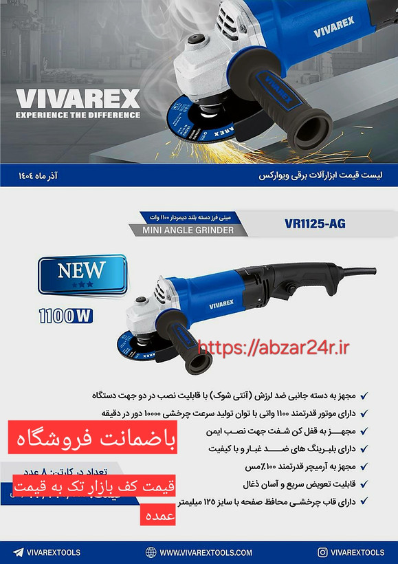 مینی فرز ۱۱۰۰ وات ویوارکس دیمر دار دسته بلند کد VR1125-AG