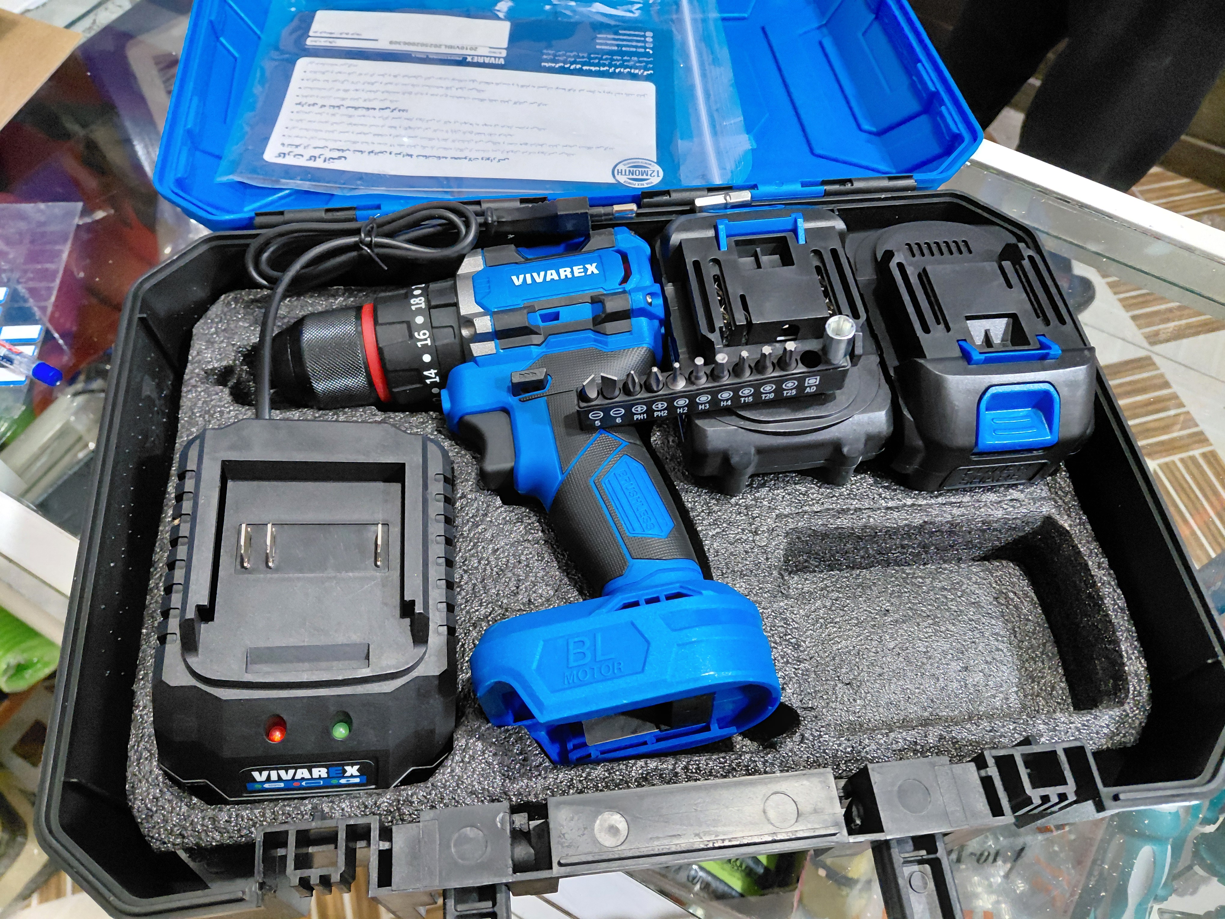 دریل شارژی ویوارکس چکشی متور براشلس VR2010V-lBLمتوربراشلس ۲۰ ولت با دو باطری