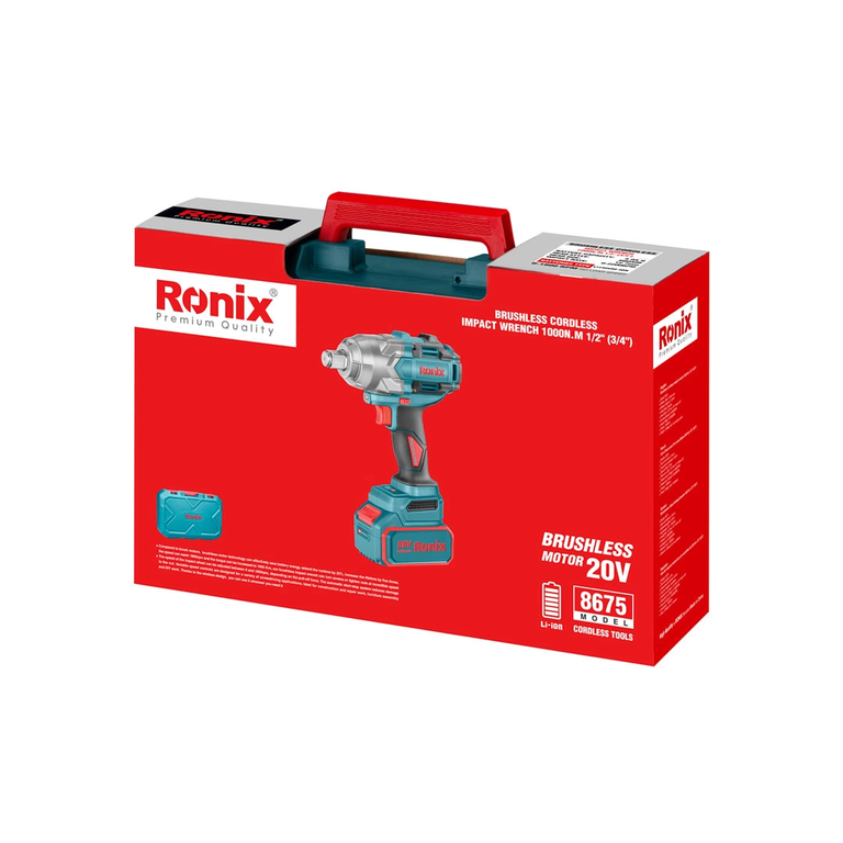 بکس شارژی رونیکس مدل 8675 با موتور قدرتمند براشلس، قدرت و کارایی بالایی را در انواع کارهای تعمیراتی، مکانیکی خودرو و ... ارائه میدهد. موتور براشلس این بکس باعث عملکرد پایدارتر و افزایش زمان کارکرد طول عمر ابزار میشود. این بکس شارژی با سرعت 1800 دور بر دقیقه و گشتاور 1000 نیوتن متر، میتواند پیچ و مهرهها را به سرعت و دقت باز و بسته کند.