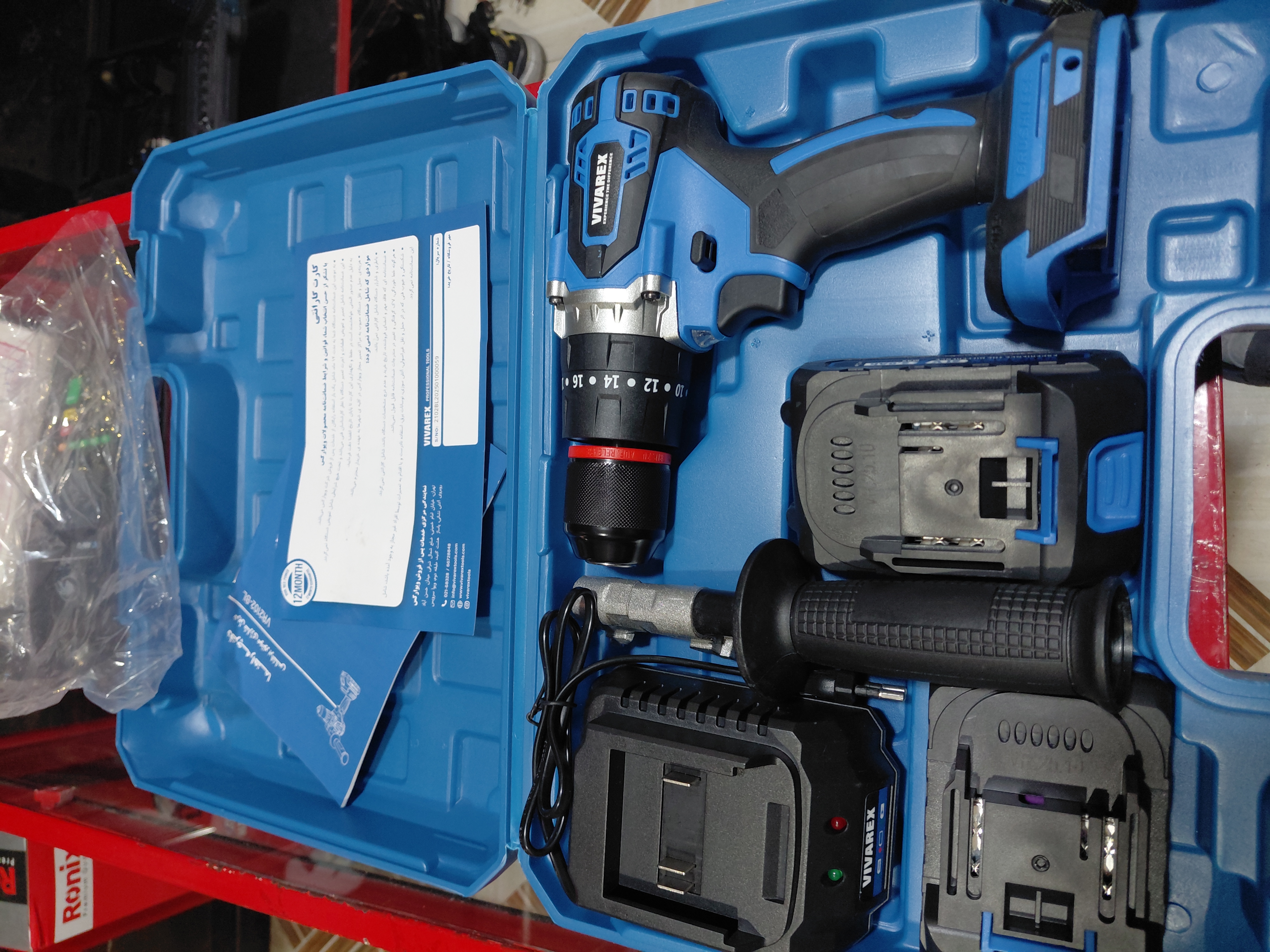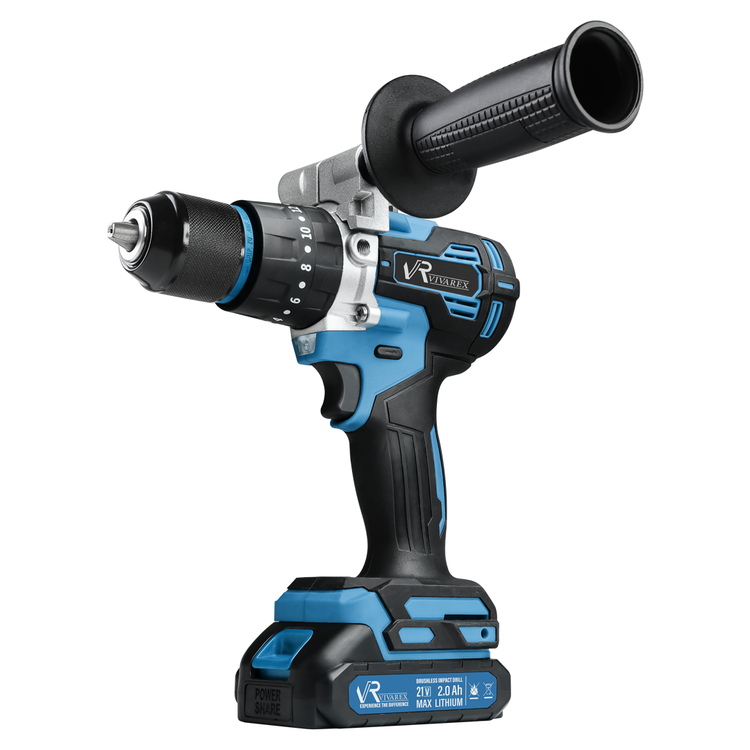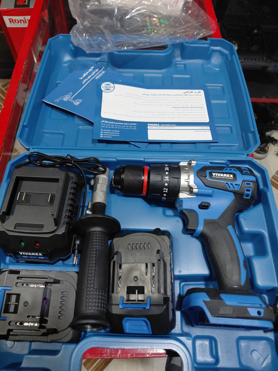 دریل شارژی چکشی ویوارکس مدل VR2102V-22BL با ۲ باتری و موتور براشلس ۲۱ ولت